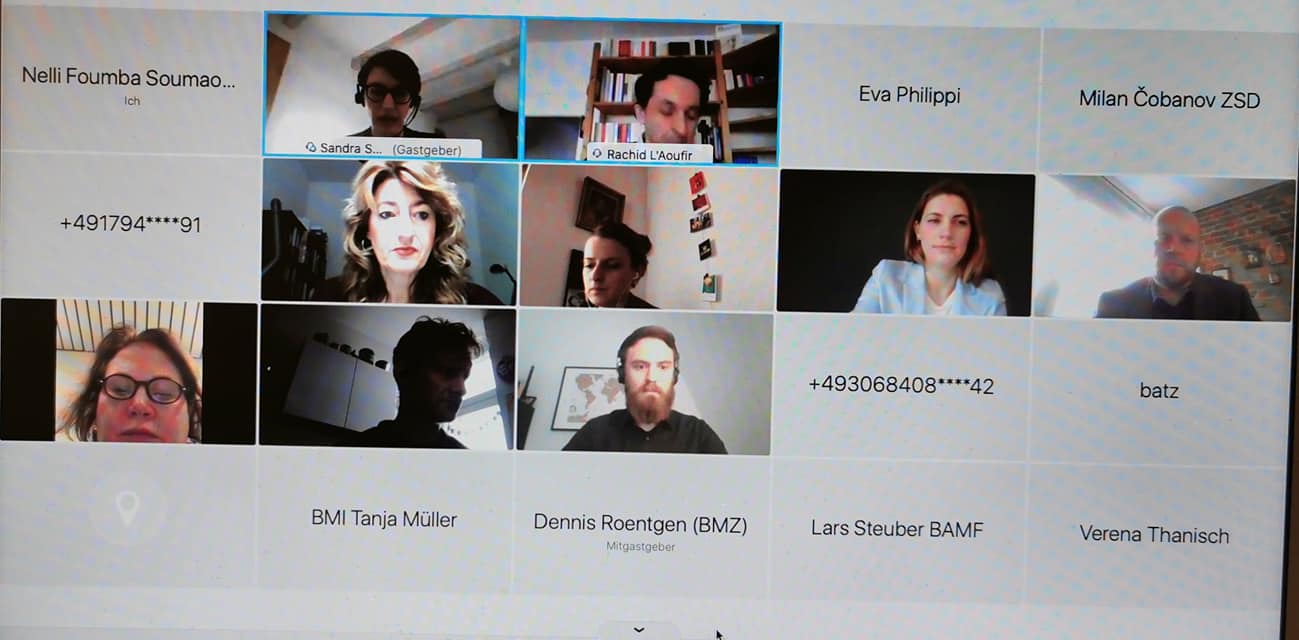 Präsentation der gutachterlichen Ergebnisse per Videokonferenz von Nelli Foumba Soumaoro, CEO und Gründer von der Firma komm Mit Afrika, vor Vertretern der Bundesregierung, bestehend aus dem Bundeskanzleramt (BKAmt), Bundesministerium des Innern (BMI), dem Auswärtigen Amt (AA), dem Bundesamt für Migration und Flüchtlinge (BAMF), dem Bundesministerium für wirtschaftliche Zusammenarbeit (BMZ) und der Deutschen Gesellschaft für Internationale Zusammenarbeit (GIZ) zum Thema: Migration, Entwicklung sowie transnationale Wirtschaft.
